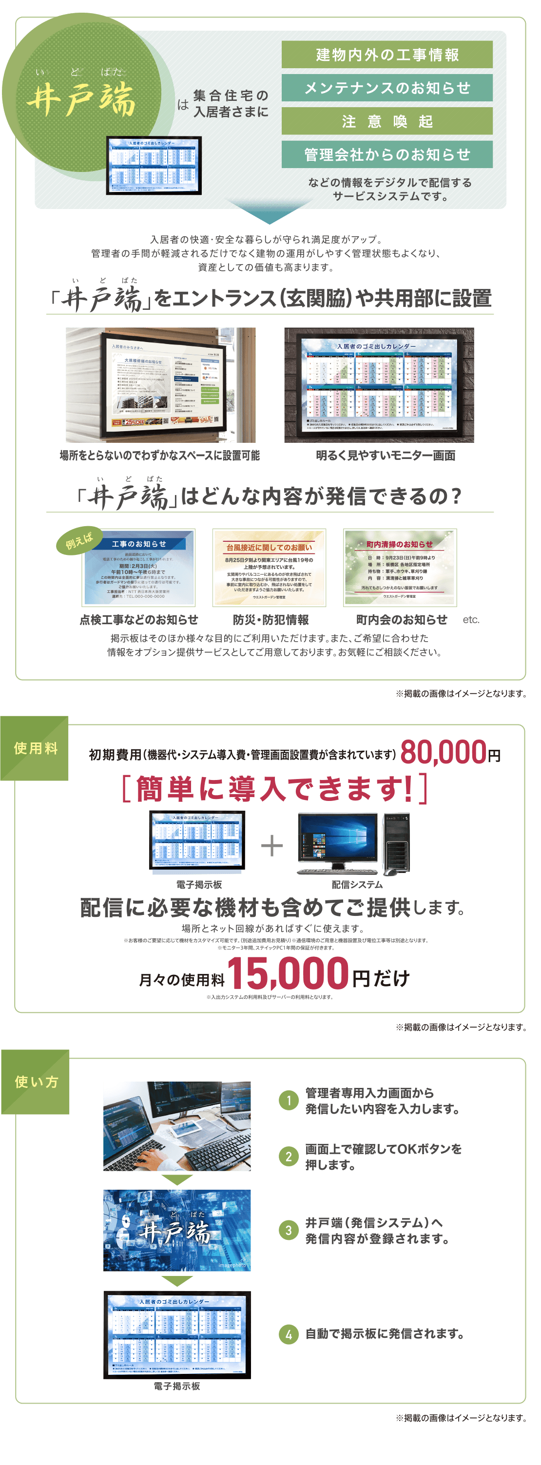 マンションの玄関に取り付ける電子お知らせ看板「井戸端」